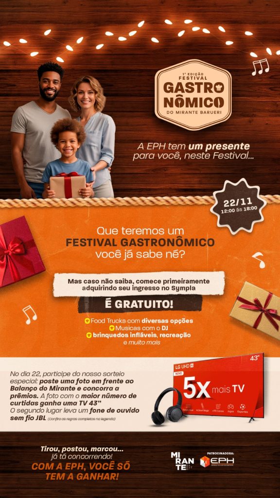 E tem mais: a EPH Incorporadora é patrocinadora oficial deste grande encontro que une gastronomia, diversão e lazer para famílias, moradores e visitantes de toda a região oeste da Grande São Paulo.